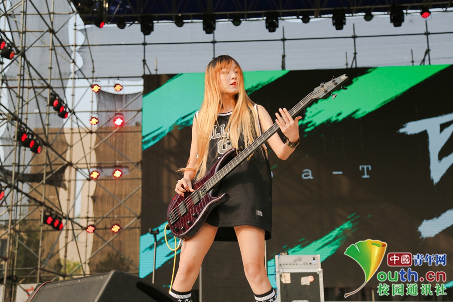 10 这是一支来自广东的乐队——Toa-T。乐手一头金黄色的秀发,随着音乐一起舞动,她尽情的弹奏,引来台下阵阵欢呼声,尖叫声。中国青年网通讯员 秦怡 供图
