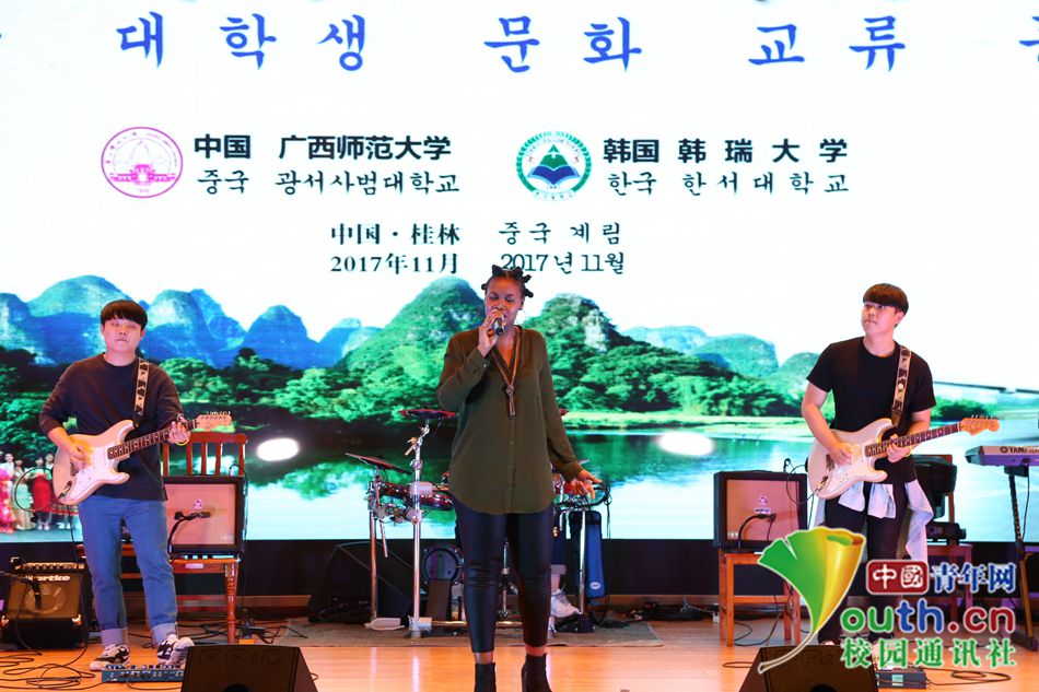 广西师范大学来自非洲的留学生也参与了此次演出,并在表演之前用生涩的中文给大家做自我介绍并打招呼,给晚会增加了不少趣味。中国青年网通讯员 张琳 摄