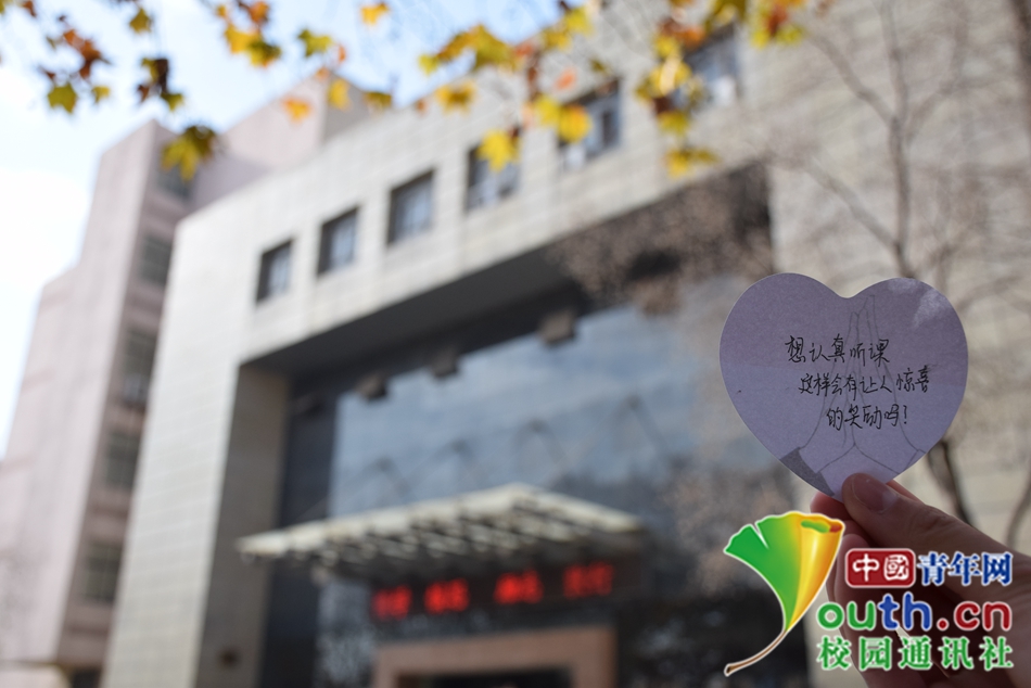 文科楼:想认真听课,这样有让人更加惊喜的奖励吗?中国青年网通讯员 李城杭 摄