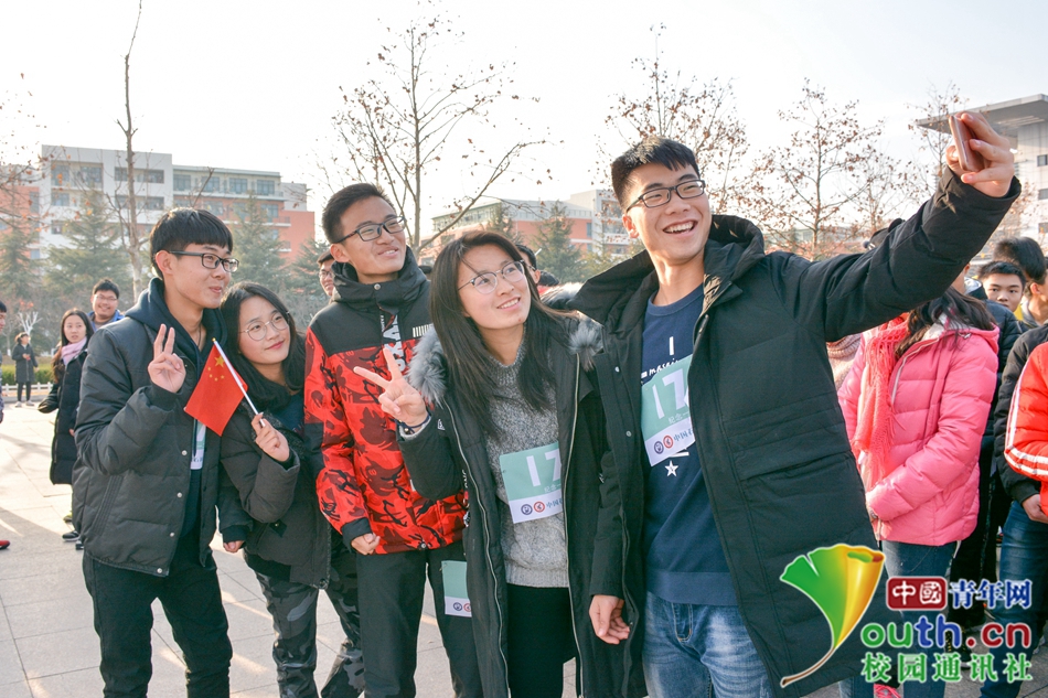 “一二·九”接力跑开始前,同学们合影留念,共同记录下这美好一刻。中国青年网通讯员 李博一 摄