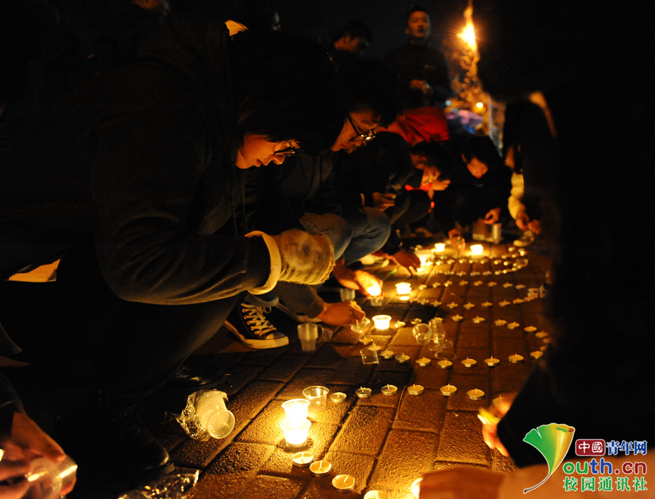 铭记历史 中石大学生用百根蜡烛祭奠30万遇难同胞