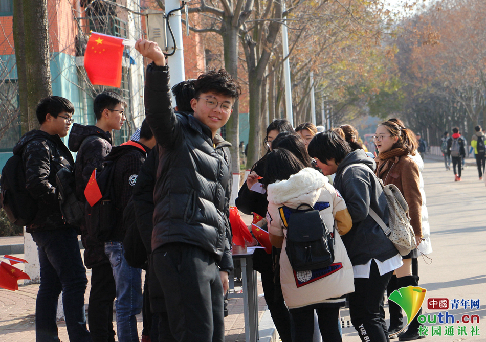 挥动手里的国旗,心中的那份骄傲感油然而发。中国青年网通讯员 温宁 摄