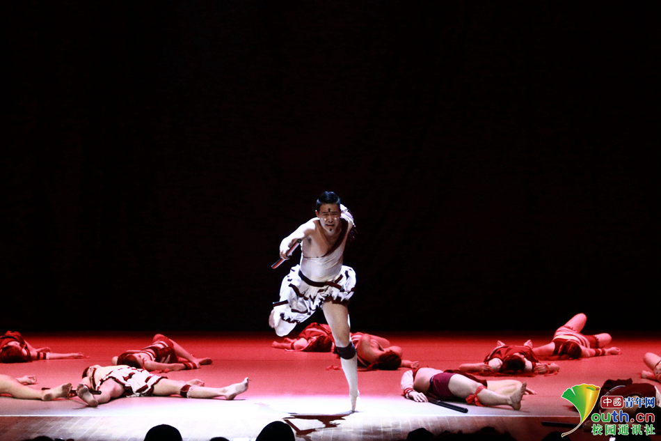 男女群舞《彩虹桥》舞者们的真情演绎了在日军大队兵力进犯,与莫那?鲁道带领赛德克族浴血抵抗的过程,并深入刻画族人从容牺牲后,不屈的灵魂越过彩虹桥,回归祖灵……中国青年网通讯员 汪彤阳 摄