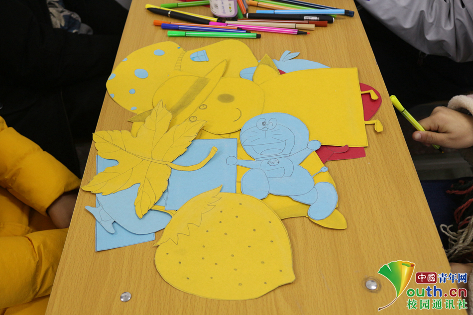 各类造型的剪纸制作完毕,摆放在桌子上,参与的学生们看着不由的露出开心的笑容。中国青年网通讯员 周玲 摄