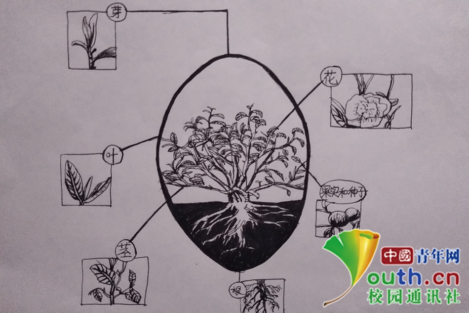 一株茶树,同与其共生的千万植物一样,根茎叶芽花果,样样俱全,茶叶取其芽尖,四季轮转,树又生枝,枝又生芽,如此反复,生生不息。中国青年网通讯员 赵嘉 摄