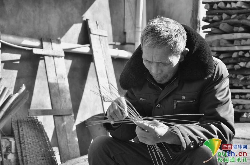 手艺人因为编织过程中出现困难而锁紧眉头。中国青年网通讯员 马峥 摄