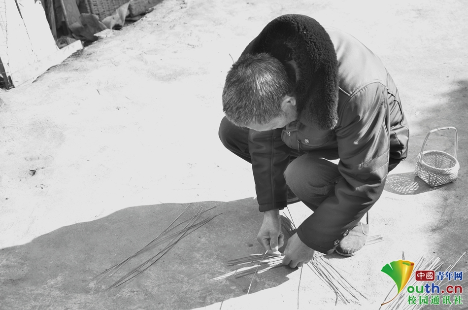 手艺人开始尝试编织,虽从未尝试过这样的竹编,爷爷却仍旧热心。中国青年网通讯员 马峥 摄