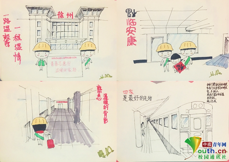 大学生志愿者手绘春运漫画 用画笔温暖回家路