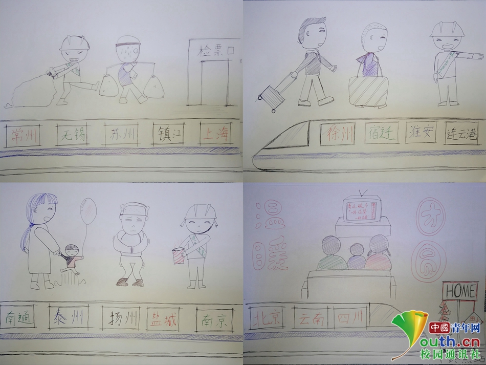 大学生志愿者手绘春运漫画 用画笔温暖回家路