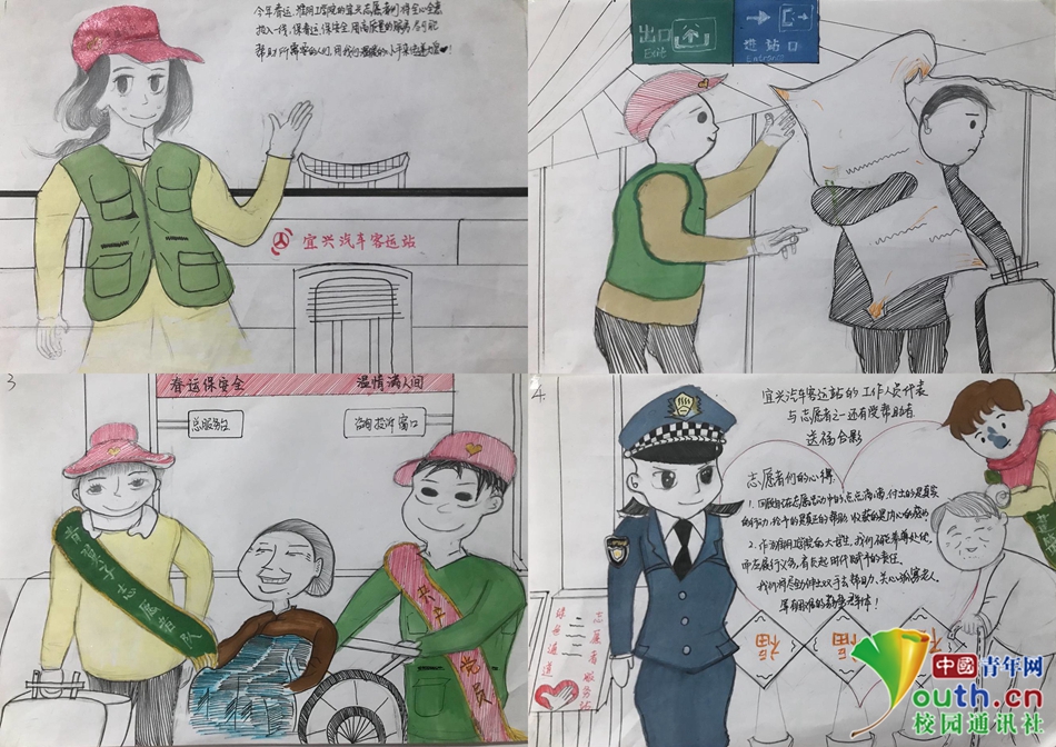 大学生志愿者手绘春运漫画 用画笔温暖回家路