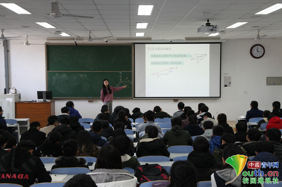 日常教学活动有序进行,教师刘珊讲授《高等数学》,和石大莘莘学子一样以崭新的精神面貌投入到教学活动中去。中国青年网通讯员 杨安 提供