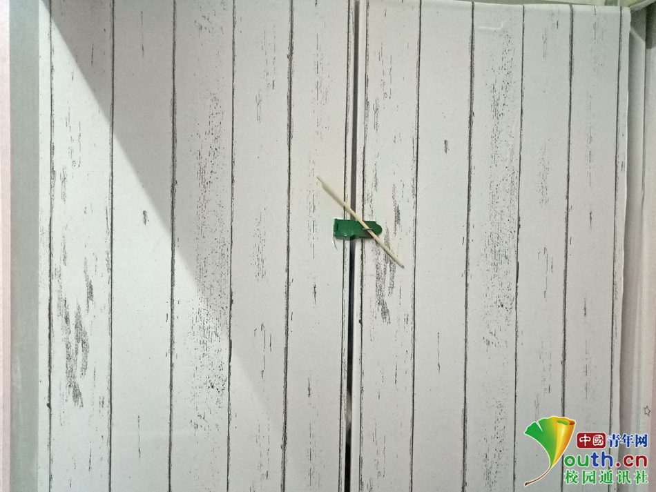 自制柜子锁:一次性筷子用完怎么处理?答案是洗干净做柜子锁,简单实用又环保。中国青年网通讯员 杨静 摄