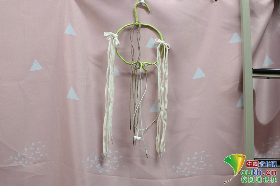 自制收纳圈:晾衣架一旦断开了就不能用了,但是经过小小的改造便重新找回了价值。把它围成一个圈就可以用来收纳带状地物品了,如:鞋带,领带,围巾等。中国青年网通讯员 杨静 摄