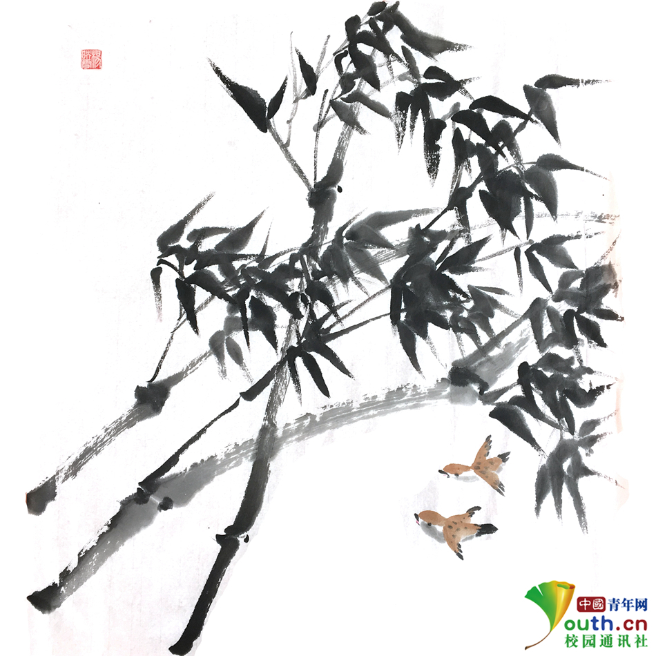 鸣竹(民主)——鸟儿在竹林中鸣叫,寓意“民主”。中国青年网通讯员 杨映雪 供图