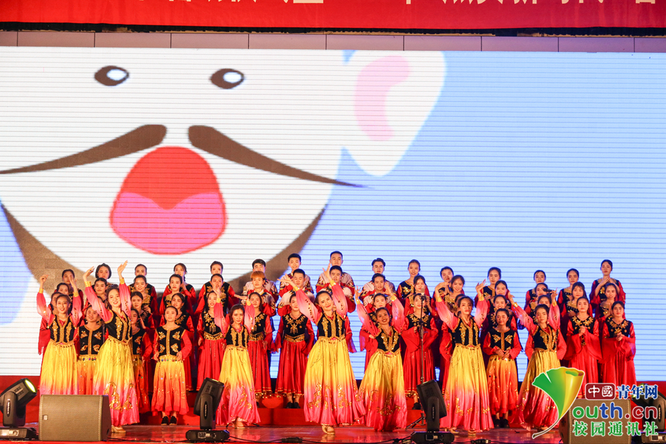 新疆舞蹈与红歌结合让人们看到了民族大团结。中国青年网通讯员 王立秋摄