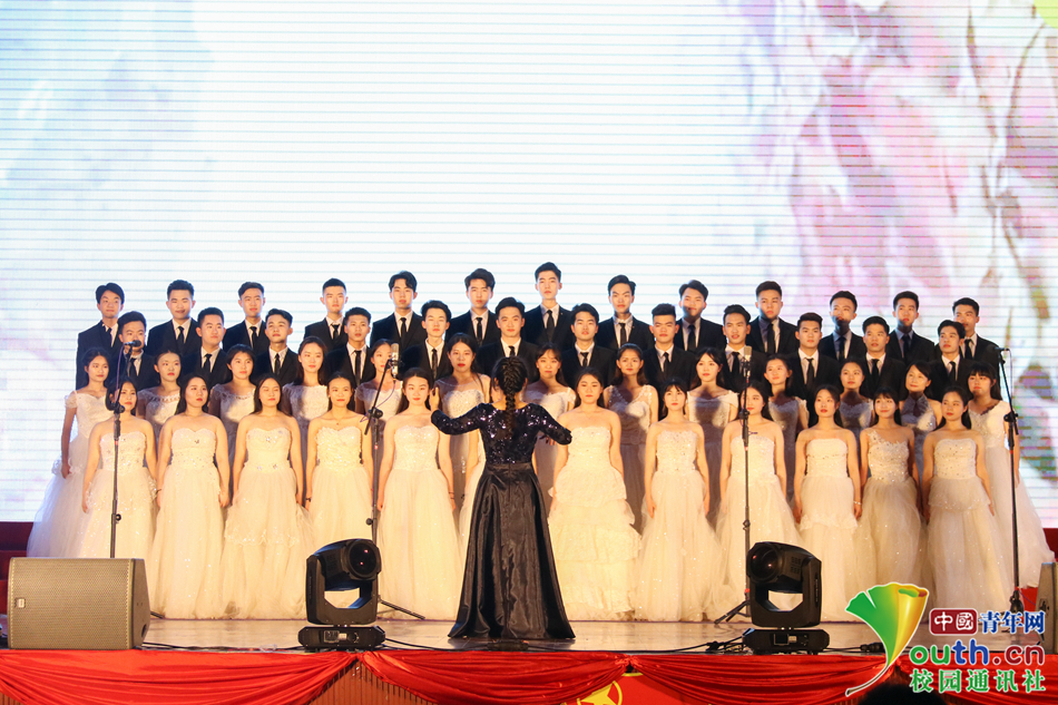 外国语学院的学生分别身着白色礼服和黑色西服,展现着积极向上的精神面貌。中国青年网通讯员 罗国涛 摄
