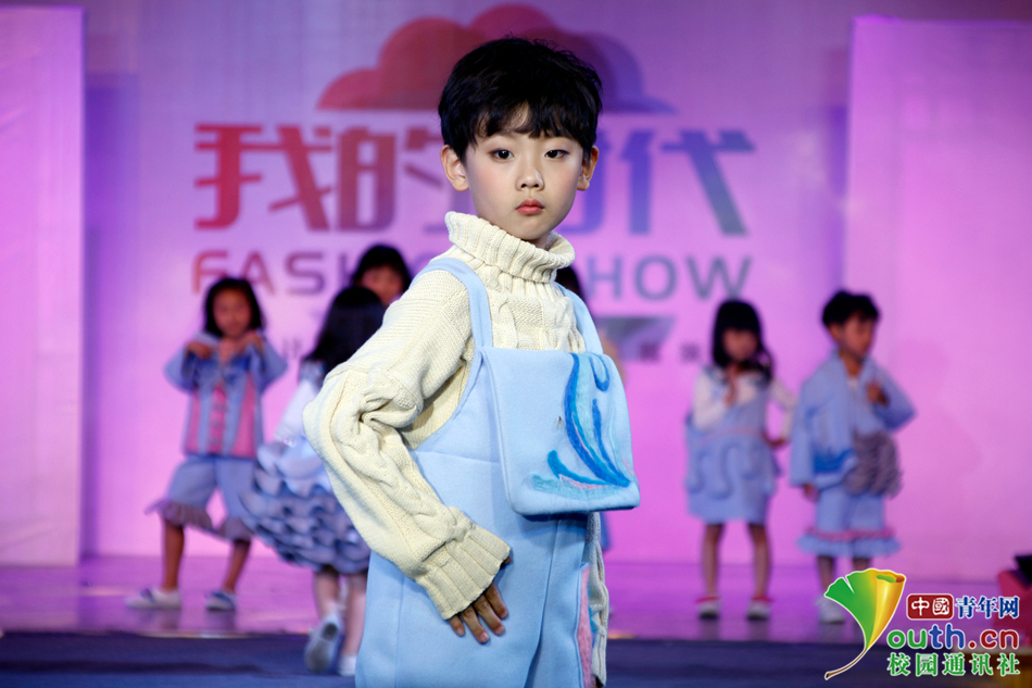 童稚的时代总是明亮又纯洁,以蓝色和白色为主色调,象征着蓝天、白云和童年的自由与纯净。简单的裁剪却又有独具匠心的小设计,体现属于童年的乐趣。中国青年网通讯员 王荣梅 摄