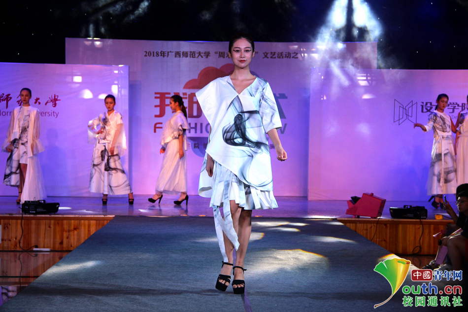 纤纤着细步,袅袅亭亭,模特身着一身典雅大气的服装款款走来,现代元素与古典元素搭配,相得益彰,是设计师们灵感迸发、创造力涌现的结果。中国青年网通讯员 任昱颖 摄