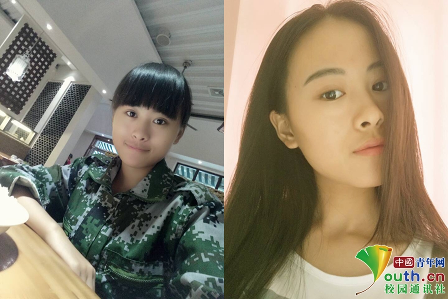 图为南阳理工学院学生杜继展大一与大四的对比照。她说:“第一张照片是刚入大学军训,那天突然下雨,当天就和室友们一起出去约饭。第二张照片是在寝室里拍的。我觉得,虽然四年过去了,可自己依旧是仙女。”南阳理工学院 张浩荣 供图