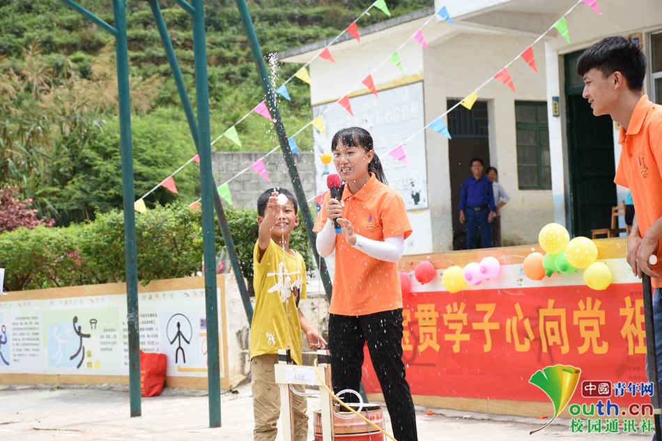 小朋友参与“水顶球”科普实验,能真正参与到科普实验中,小朋友特别开心。中国青年网通讯员 赵梦艺 摄