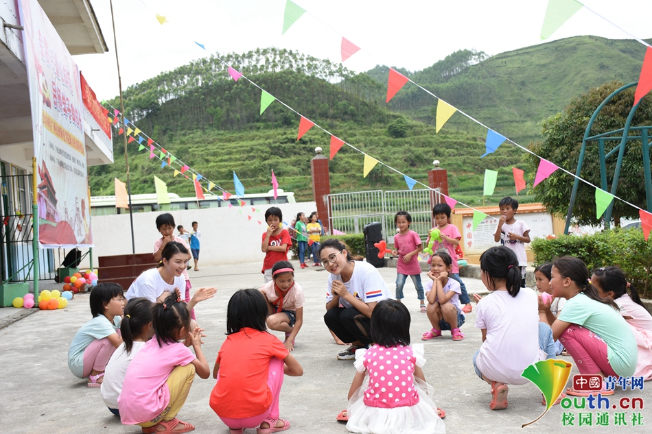 “丢手绢,丢手绢,轻轻地放在小朋友的后面”,大姐姐输了要来表演一个节目。 中国青年网通讯员 赵梦艺 摄