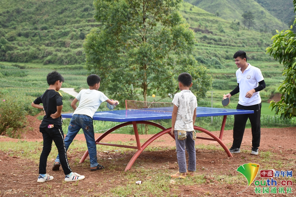 搭在泥地上的乒乓球桌,干瘪、弹性不足的乒乓球,即使条件艰苦,依旧心情飞扬。 中国青年网通讯员 梁慧 摄