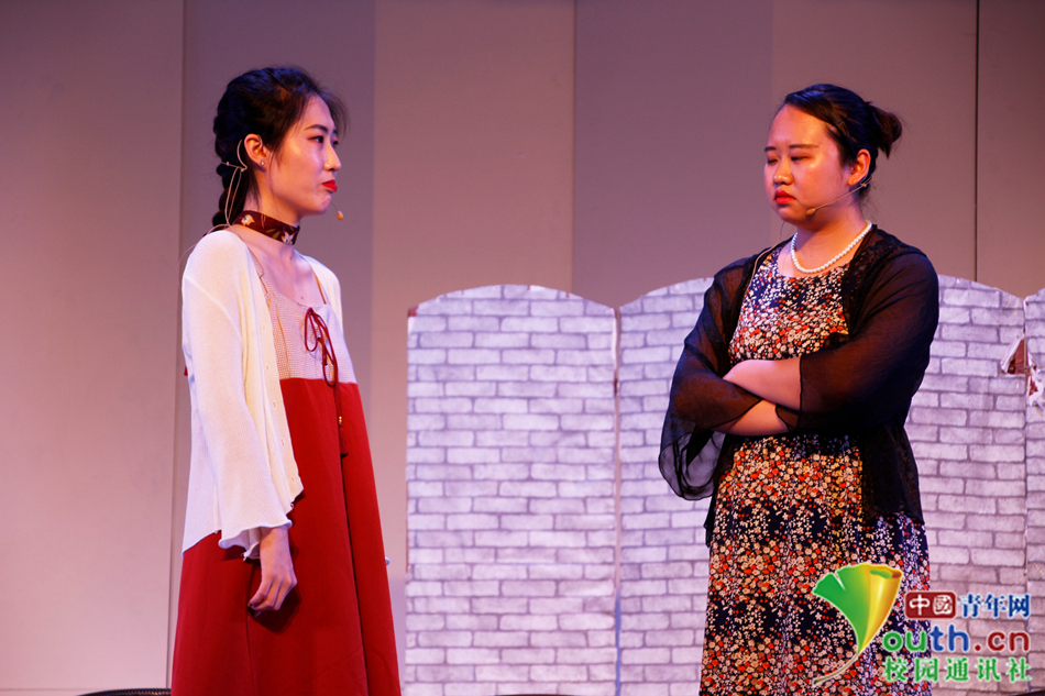 以梵高为人物原型的话剧《油漆未干》也在舞台上演。此作品讲述的是一个无名画家死后的画卖到天价,但身为画家的遗孀,在这场金钱的游戏中保持真实情感。即使画价出得再高,她也不愿把画家生前的心血流到别人手中。中国青年网通讯员 陈子铃 摄