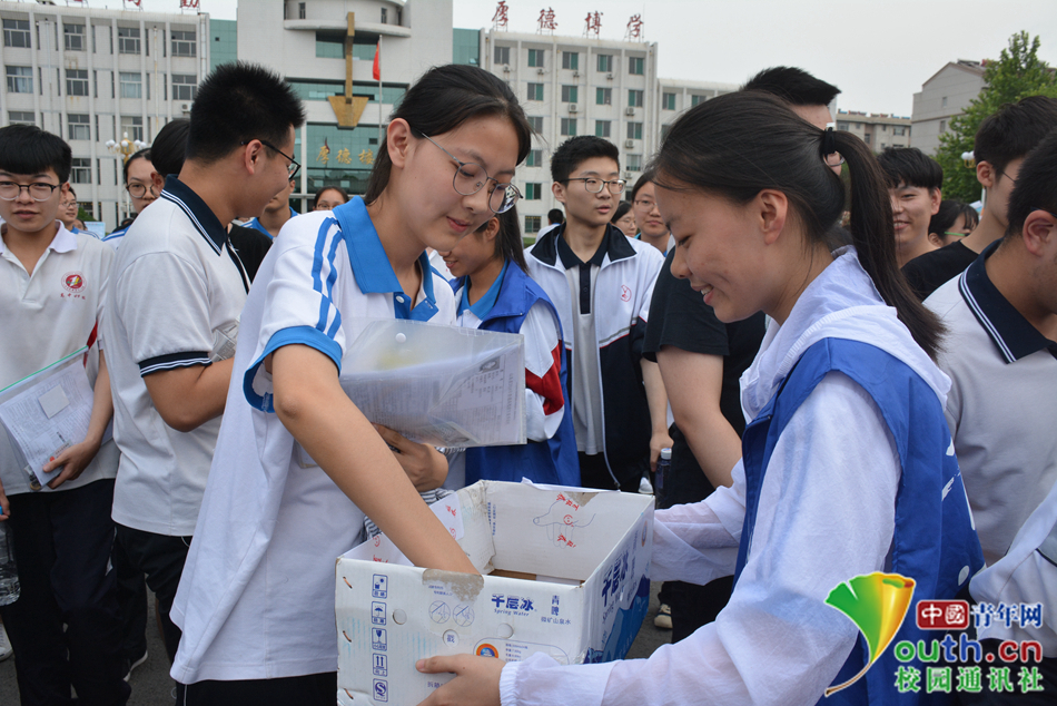 面带微笑是对考试的最大自信,将高考用过的工具捐出去,为学弟学妹们助力来年的高考。 中国青年网通讯员 刘子煜 摄