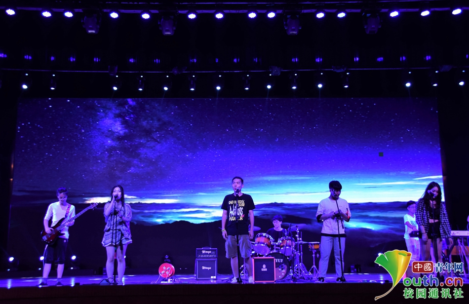 演出即将结束,电声乐团的主唱们齐齐亮相,共同演唱属于他们的“难忘今宵”,为你点亮《夜空中最亮的星》。中国青年网通讯员 王云飞 摄