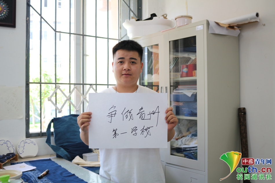 敢与争先,敢与创造,2013级毕业生写了对学校写下了“争做贵州第一高校”的寄语。中国青年网通讯员 杨宪 提供