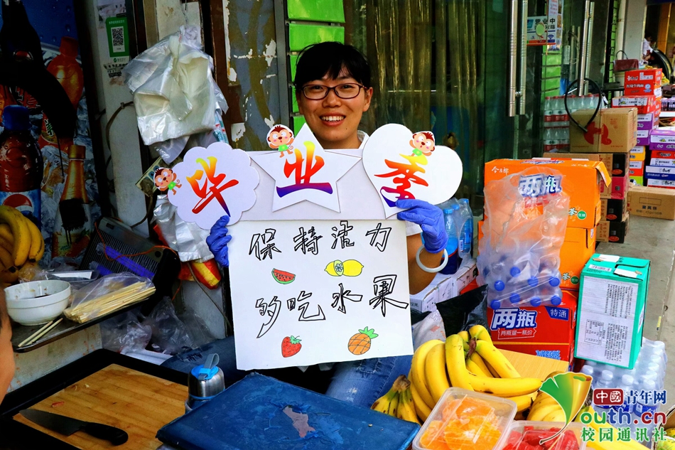 水果摊姐姐说:“多吃水果,活力满满,分别在即,珍重万分!”中国青年网通讯员 安雯慧 提供