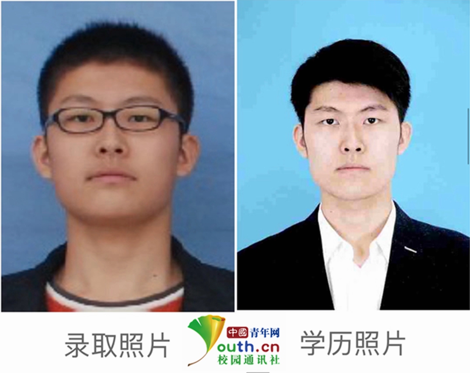 图为淮北师范大学学生姜威的录取照和学历照。面对四年的变化,他说:“四年转瞬即逝,我就像一颗栗子,在大学这个铁锅中翻炒四年,蜕变、成熟,希望未来自己越来越好。”本人供图