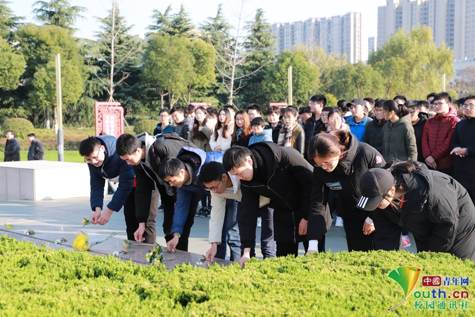 盐城工学院大学生为南京大屠杀遇难者献花。中国青年网通讯员 侯宇轩 雷欣悦 徐健聪 供图