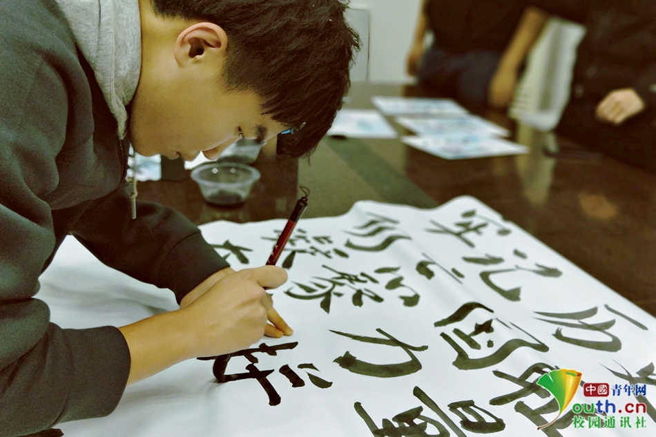 福州大学至诚学院机械工程系的同学以书法作品,书写寄语,悼念南京大屠杀死难者。中国青年网通讯员 谢金湘 供图