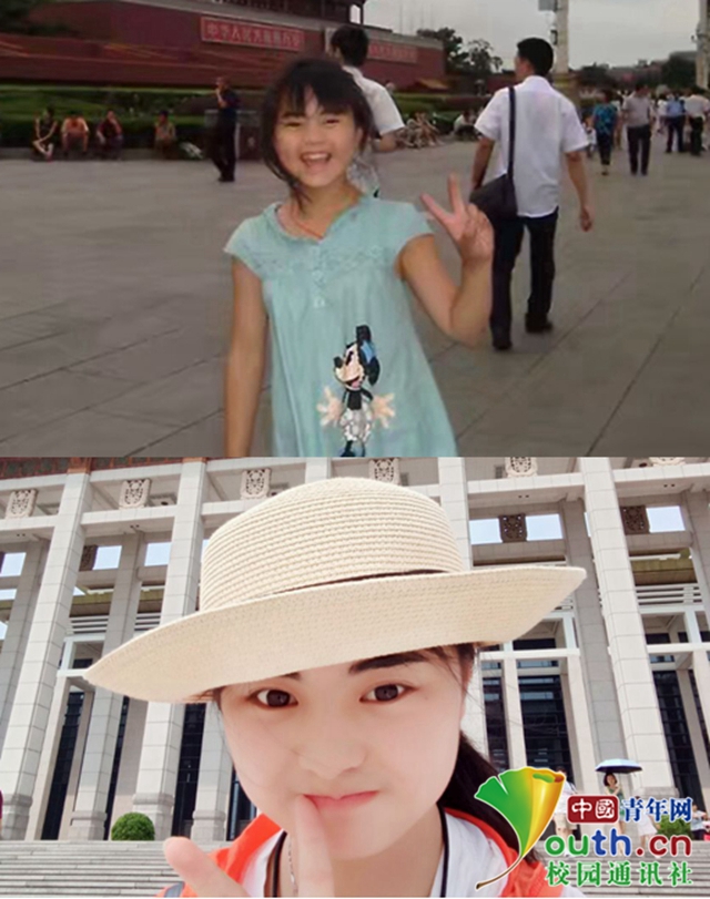 图为周口师范学院学生马梦婷的10年对比照。对于这10年的成长与变化,她说:“一晃十年过去了,我仍然是那个爱笑的小女孩,仍然玩心很大,仍然不是个淑女……但是,现在的自己和十年前的自己相比,多了一份成熟,少了一份幼稚。加油,未来的自己,加油,未来的我们。”本人供图