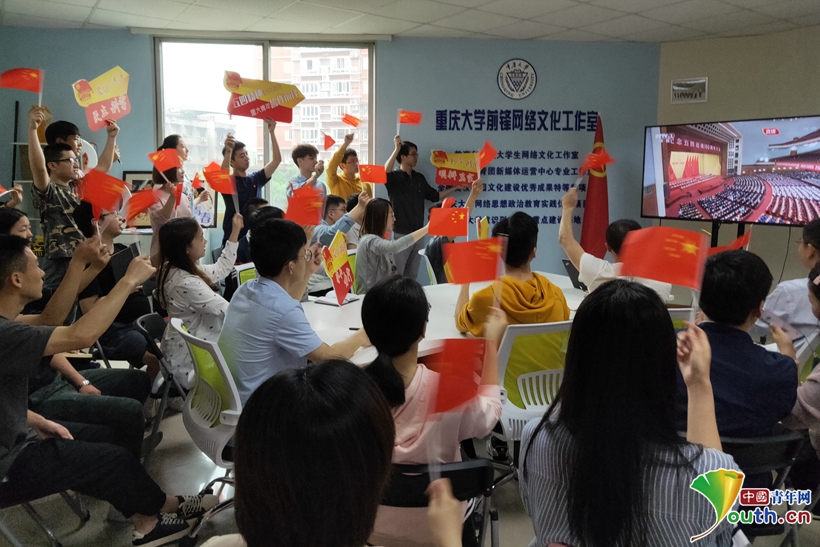 12 重庆大学师生收看纪念五四运动100周年大会直播。中国青年网通讯员 包晗 供图