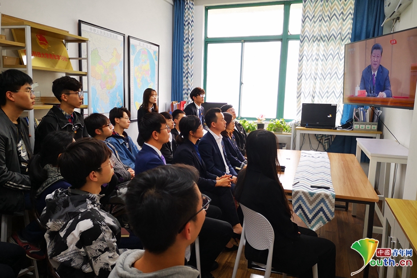 15 江苏科技大学师生收看纪念五四运动100周年大会直播。中国青年网通讯员 张冬 供图