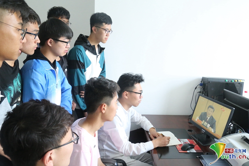 10 华北理工大学师生收看纪念五四运动100周年大会直播。中国青年网通讯员 李安 供图