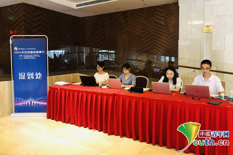 图为“2019百所高校创新人才顺德行”报到处。中国青年网记者 崔宁宁 摄
