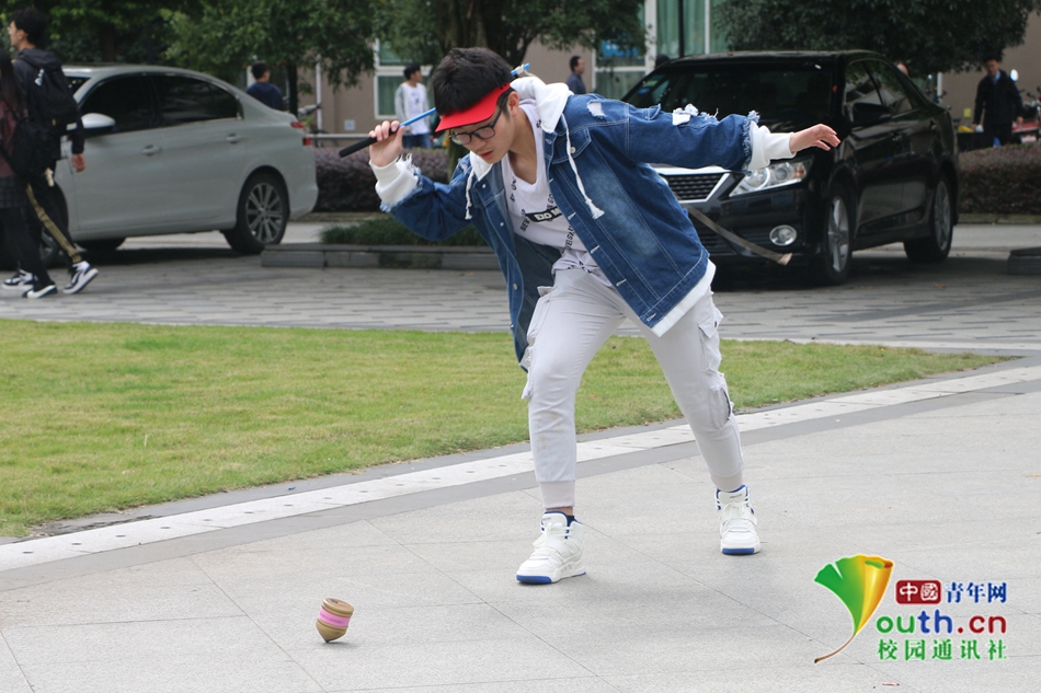 除了品尝现场冲泡的茶,观看茶艺表演外,活动现场还为同学们准备了小游戏。具有中国特色的抽陀螺游戏吸引了不少同学跃跃欲试。不过玩过的同学表示,远不如看起来那么容易上手。 中国青年网通讯员 罗晴 摄