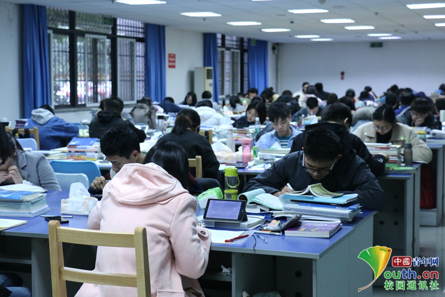 09 西南石油大学学生在图书馆自习室备战考研。中国青年网通讯员 张迅 摄