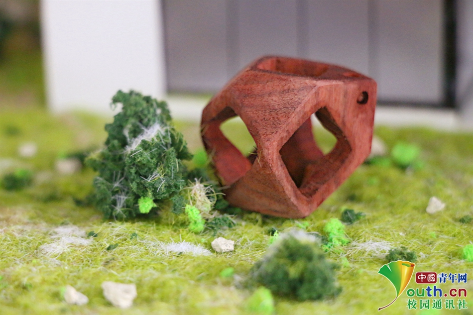 这件作品名为“性格多面体”。创作者技艺娴熟、设计精妙。他给作品的每一个面都设计了不同的形状、大小和纹理,象征着不同的人有不同的个性。而正是因为每个人的独一无二,才使得世界如此多姿多彩。中国青年网通讯员 郑惠予 摄