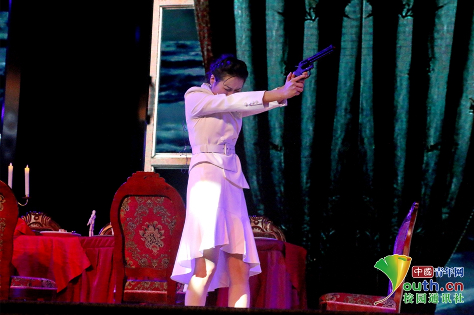 一个一个人接连被杀,阿姆斯特朗死后,幸存者只剩下维拉与隆巴德。他们原本温和的表情瞬间变得狰狞,同仇敌忾的联合关系也瞬间被打破,气氛剑拔弩张。情节渐渐推向高潮,维拉一把抢过了隆巴德后腰的枪,在与隆巴德拉扯抢夺枪支时,射杀了他。中国青年网通讯员 郑惠予 摄