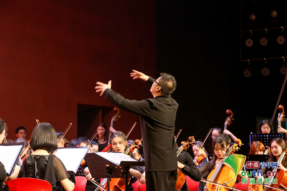 “我此生最大的幸运,就是坐上这艘船,遇上了你。”由学生交响乐团、学生打击乐团共同演奏的乐曲《泰坦尼克号组曲》将乐厅的氛围推向了高潮。时而激昂慷慨、时而低沉雄厚的音乐让人联想到杰克和露丝凄美的爱情故事。中国青年网通讯员 张曼 摄