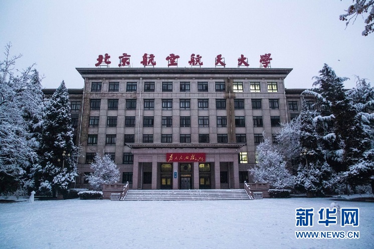 2020高校初雪美景刷屏,美不胜收!北京航空航天大学供图。史越 摄
