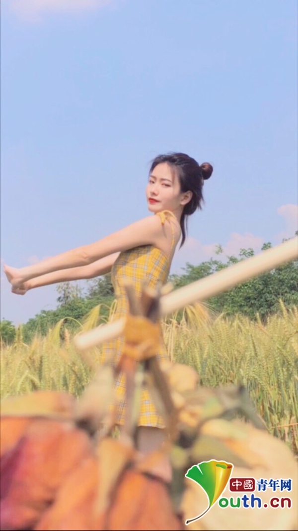 四川西南航空职业学院学生蒋丽娜用花草做衣裳拍创意照。本人供图