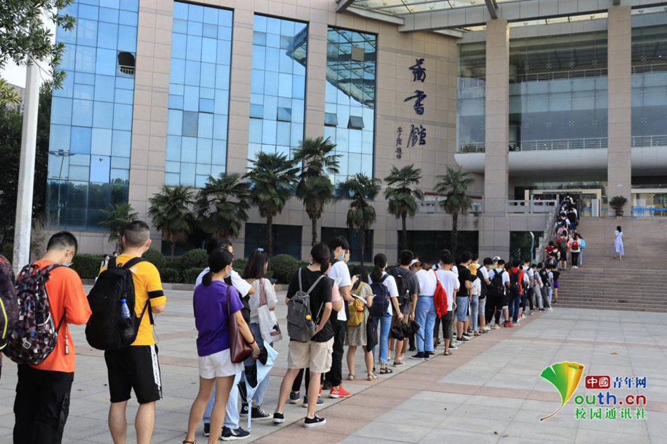 湖北大学师生排队入馆。中国青年网通讯员 黎可心 摄