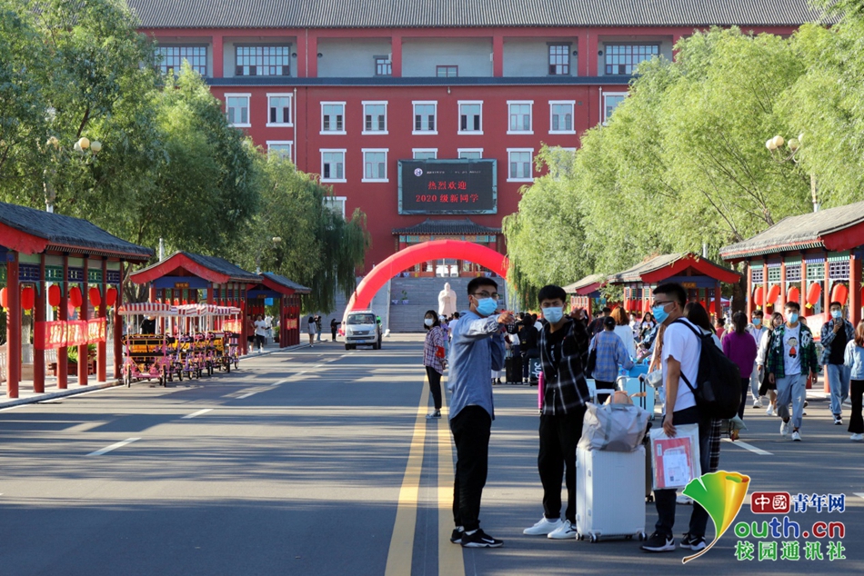 图为志愿者为2020级新生耐心解答入校疑惑,指明道路。中国青年网通讯员 李凯蒙 摄