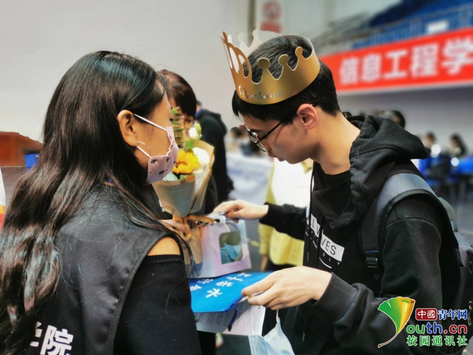 8水利水电学院为即将过生日的新生送上小蛋糕、鲜花,表达对新生的欢迎,体现学院关怀。中国青年网通讯员 何茵芷 供图