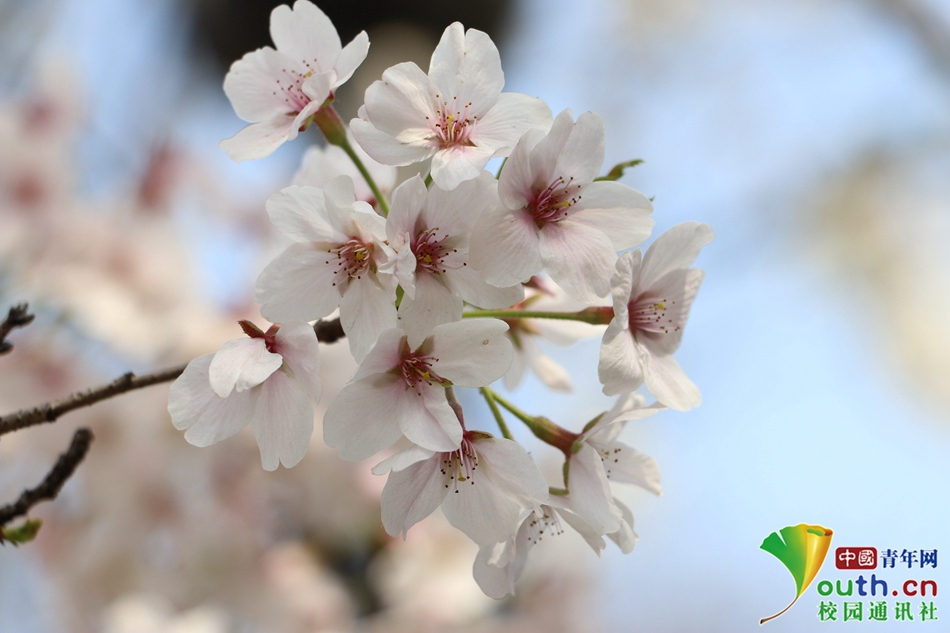 娇艳欲滴的樱花,在澄蓝天空的映托下灿烂如阳。中国青年网通讯员 沈奇 摄